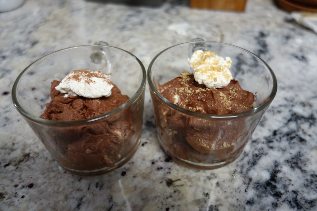 This recipe requires using a microwave/heat proof bowl to melt chocolate chips/pieces and heavy cream – either in a microwave or using the double boiler method. We are making a ganache of 2:1 ratio by volume of chocolate to whipping cream. Let this chill, completely. If this is rushed and added to the whipped cream, good chance that the whipped cream will split. The taste is not terribly compromised then, BUT, it has a grainy texture and looks sad. Patience, my dear friend!