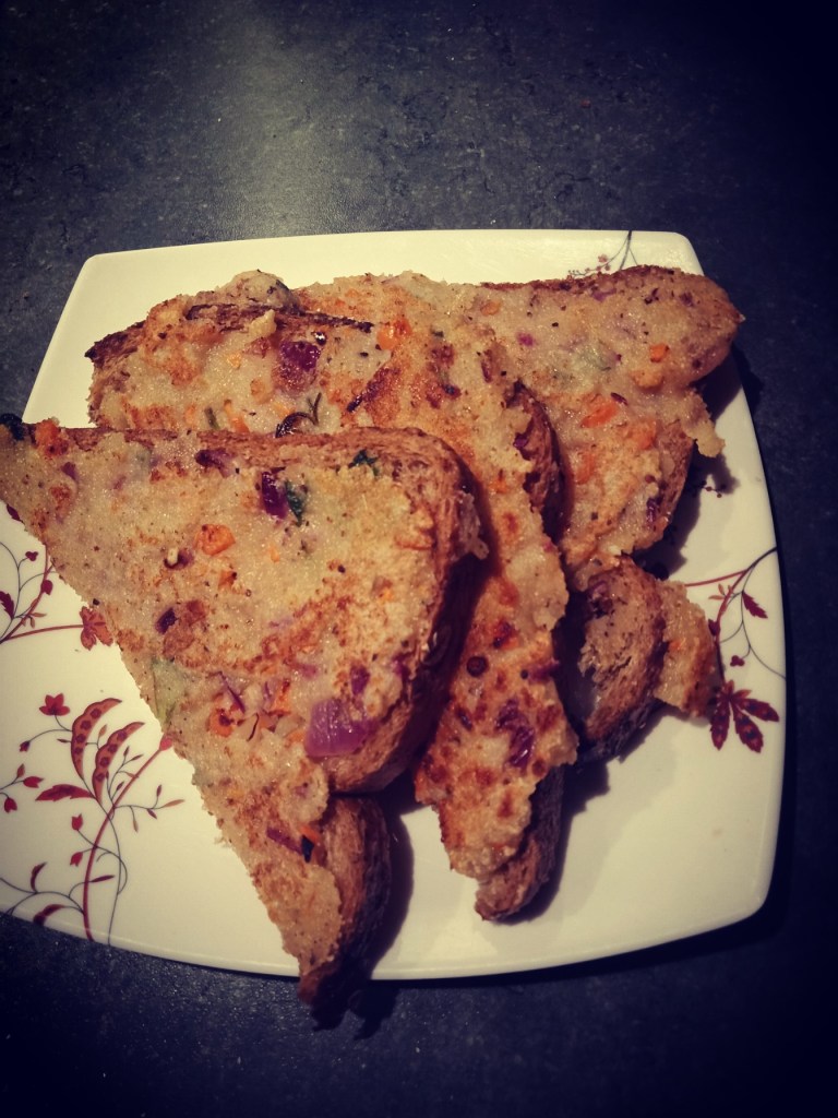 This is one bread toast or should I say Indian pizza toast (without any need of cheese!) that comes super handy when you have surprise guests at home or when you just crave for something good and healthy. An easy to make bread toast that is sure to appeal to your taste buds and a healthy one too. What more can we ask for isn’t it! It can even serve as a good tiffin box item. So let’s get started on the recipe 😊.