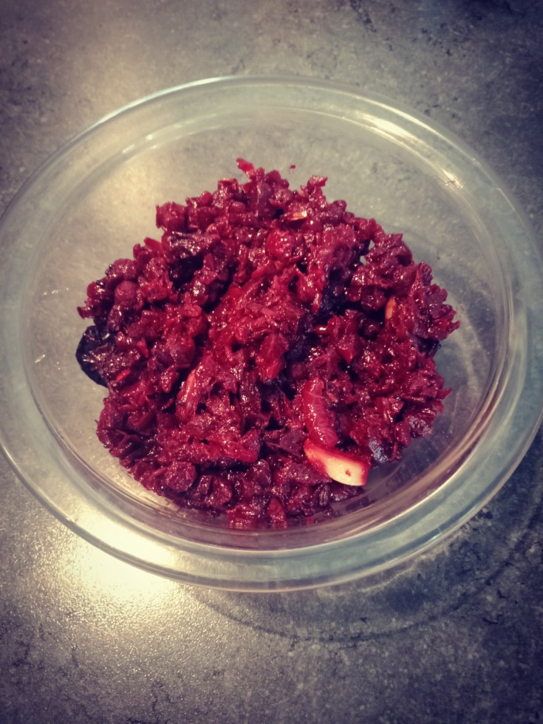 – 2 big or 3 medium sized beetroots (shredded or cut finely to tiny pieces)