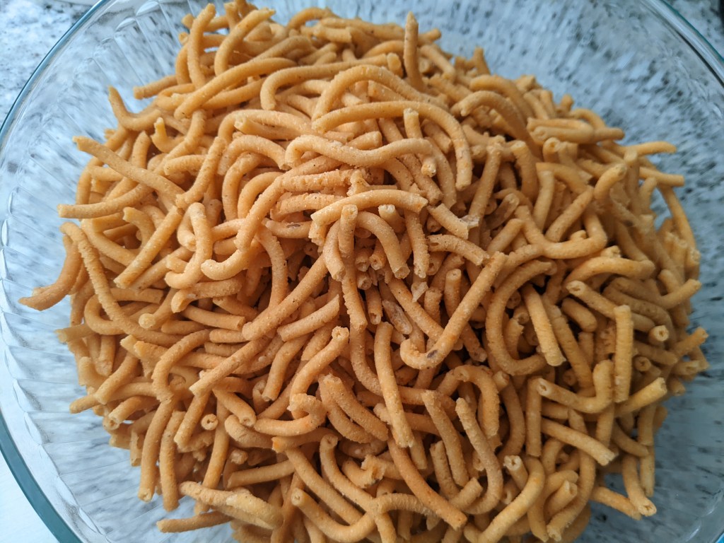 Another day, another snack. This is like murukku with urad and rice flours. I prefer these to besan based ones for some reason.